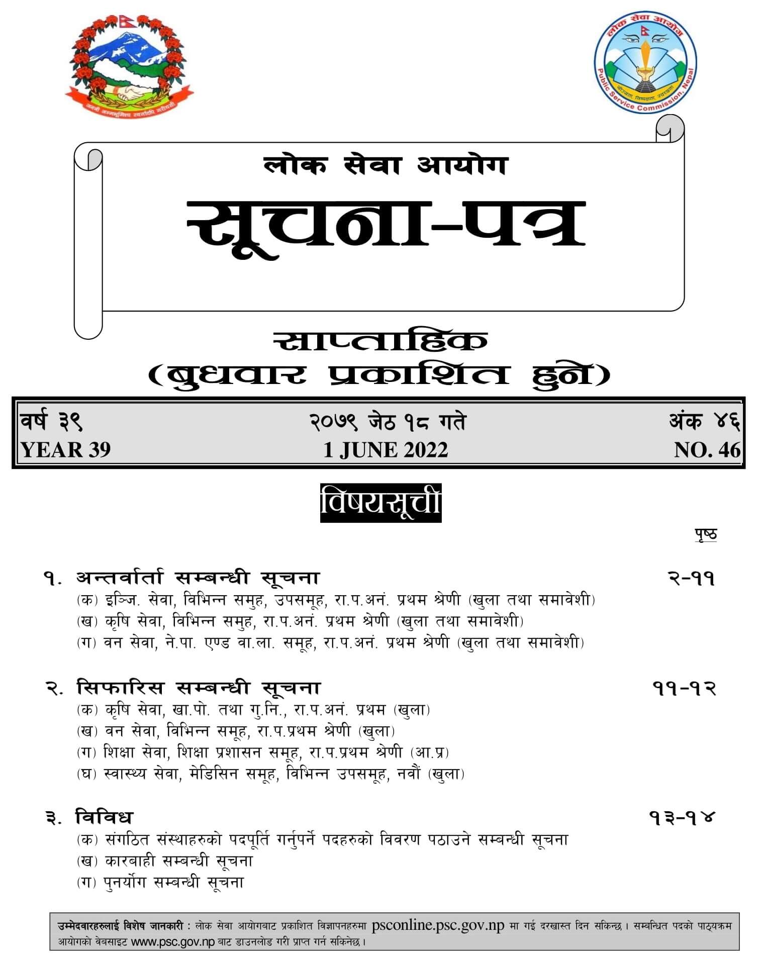 Lok Sewa Aayog Weekly Notice: Every Week Lok Sewa Aayog (Public Service Commission) published Weekly Bulletin regarding Vacancy, Promotion, Exam Result, Interview Details, Appointment List, and Many more updates of Lok Sewa Aayog in a weekly period. Here is the Weekly Notice (Bulletin) published by Lok Sewa Aayog on 2079/02/18 B.S.
